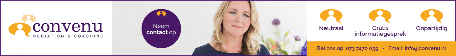 Diane van Heeswijk, vanaf 2009 MfN-registermediator bij Convenu, helpt je in dit proces en denkt graag met je mee. “Voor mij is mediation een heel belangrijke manier om met respect het ontzettend moeilijke gesprek over uit elkaar gaan te voeren. Op respectvolle wijze een punt zetten achter een relatie, dat is een uitdaging voor degenen die gaan scheiden. Daarmee legt men een basis voor de toekomst. Enorm belangrijk als er kinderen zijn en mensen door het ouderschap aan elkaar verbonden blijven. Respect voor alle emoties en belangen is een belangrijk punt binnen het mediationproces”.